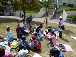 温かい日差しの中。外で食べるお弁当はおいしい!