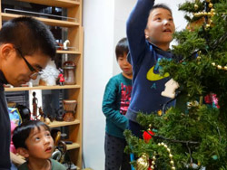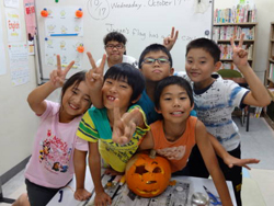 クリスマスについで人気のあるハロウィン。スクールでは魔女やピエロ、海賊など生徒はおもいおもいの仮装をしてのハロウィンパーティー。仮装をしたままレッスンを受け、ハロウィンに関係したゲームなども楽しみます。2012年は、かぼちゃをカービング。JACK-O-LANTERNを作りました。みんな大喜び!!